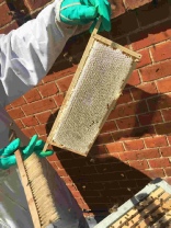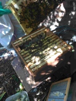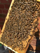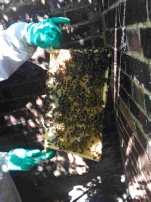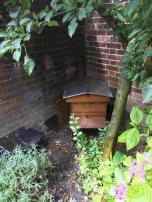The second hive is up on the roof but sheltered from the worst of the elements by an adjacent wall. This is polystyrene National Hive which will be much better in the winter and generally is better at regulating the hive’s temperature. This is a very productive hive which is doing very well in its present location and in July 2017 started producing the first Charlotteville HONEY.